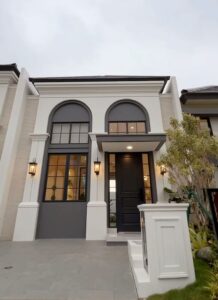 Desain Amerikan klasik sangat menekankan keseimbangan. Kusen aluminium custom memudahkan penyesuaian ukuran dan detail agar fasad tampak harmonis.