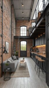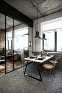 Gaya industrial terinspirasi dari bangunan pabrik, gudang, dan struktur utilitarian yang minim ornamen tapi kuat kesan visualnya. Di dalam rumah bergaya ini, warna-warna netral, material ekspos, dan bentuk geometris tegas adalah kunci utama. Dan di sinilah kusen aluminium masuk sebagai paduan sempurna.